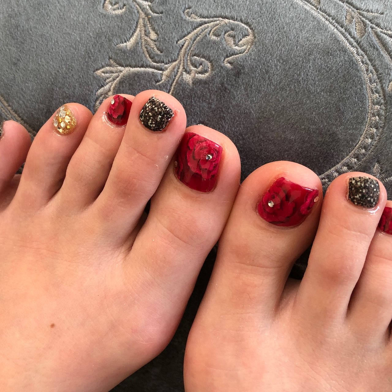 秋 冬 浴衣 女子会 フット Gracenailのネイルデザイン No ネイルブック つま先ネイルデザイン Diy ネイル ネイルデザイン